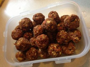 - 馬が好きな穀類を加えてよく混ぜる。まとまりにくければはちみつを足す。