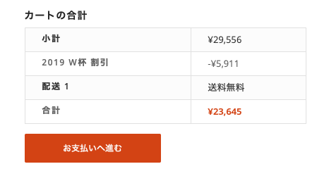 上記のように、カート内容が¥5,000以上だと、「BLACK FRIDAY SALE」が自動的に適応されます
