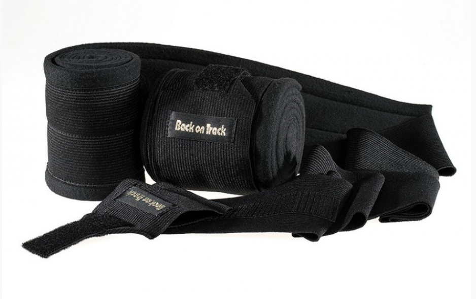 伸縮性の高い素材と遠赤外線効果で馬の脚をしっかり包み腫れや炎症を減らしてくれる肢巻きパッド不要の運動用コンビバンテージ