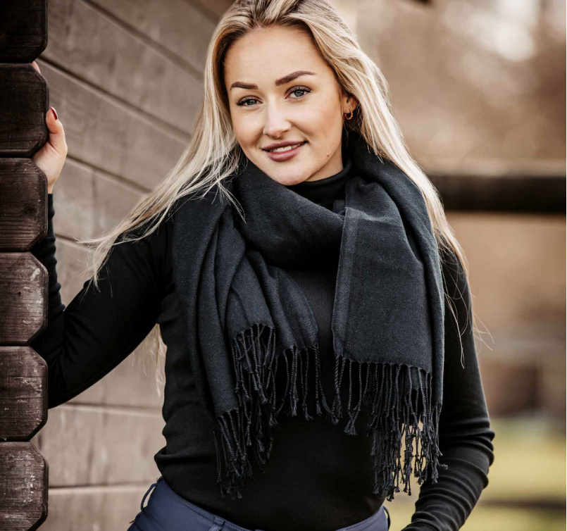 血流促進のWelltex®テクノロジーで着けているだけで痛みやコリを軽減してくれるウールミックスの暖かいロングスカーフ