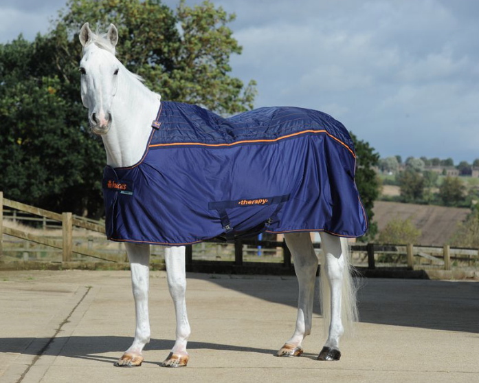 背中や腰に問題がある馬や、乗馬時にウォームアップが時間がかかる馬に最適、着せているだけで腫れや炎症を軽減、治癒を早めるクーラーラグ。微細ステンレススチールメッシュで作られた Recuptex素材が体内で発生する磁場を反射し血液循環を促して腫れや炎症を軽減し治癒を早めるセラピーシリーズ