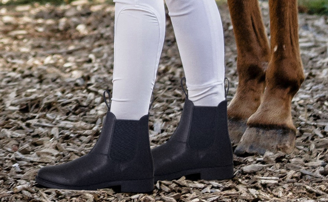 耐久性と撥水加工を備えた本革と見間違える合成皮革製乗馬用ショートブーツ