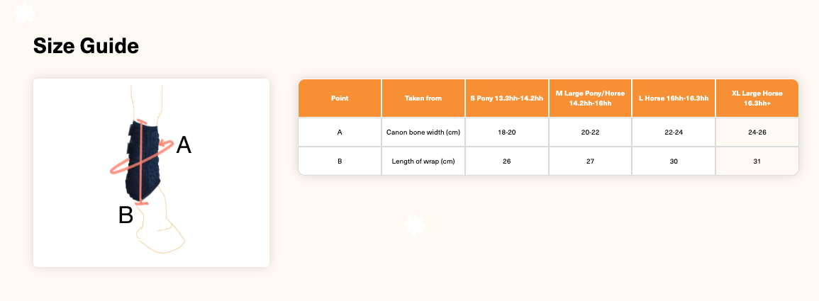 *基本的に後肢は馬の菅周りに合わせて前肢より1サイズ上をお選びください
