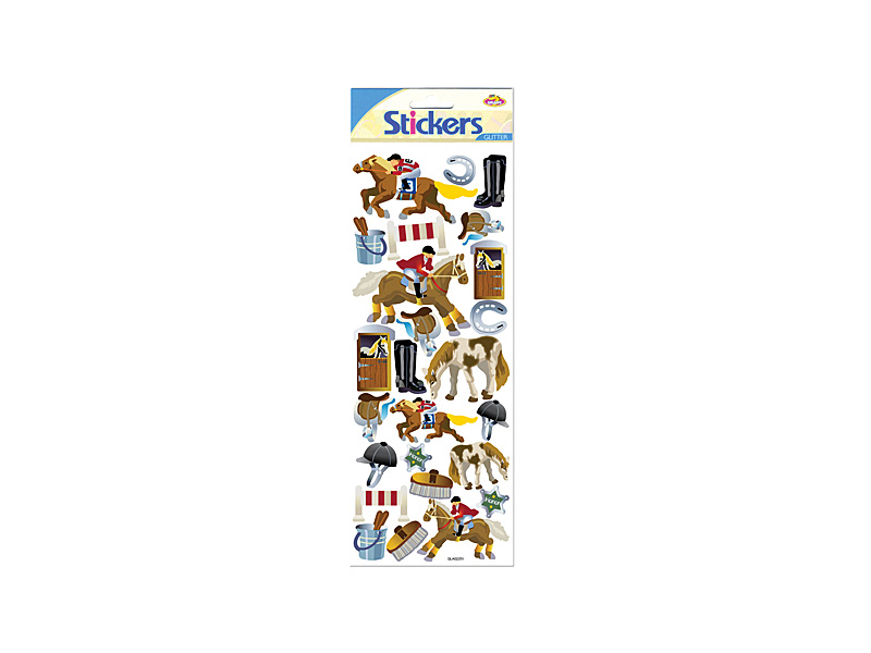 いろんな馬や乗馬用品、道具にキラキラのグリッターが付いたステッカー