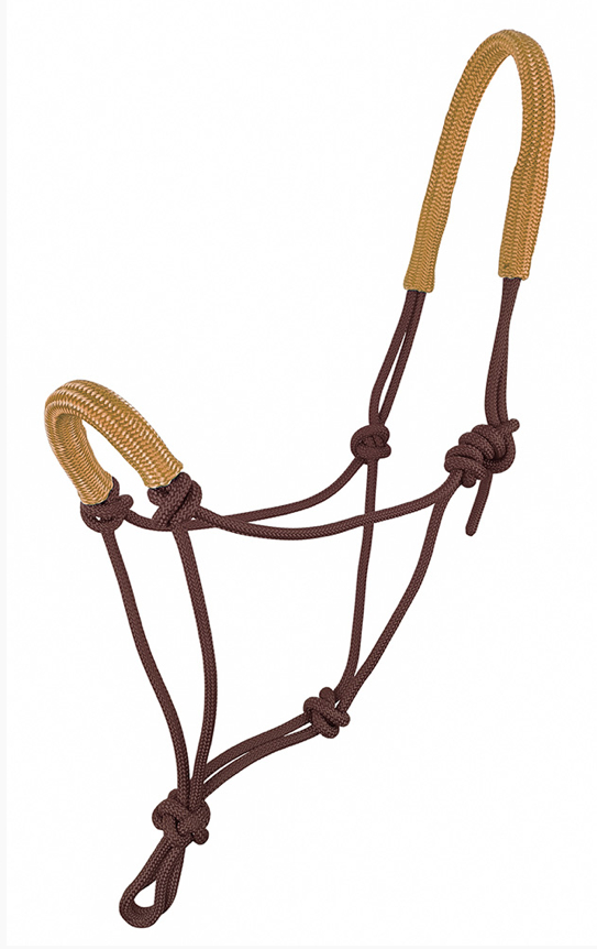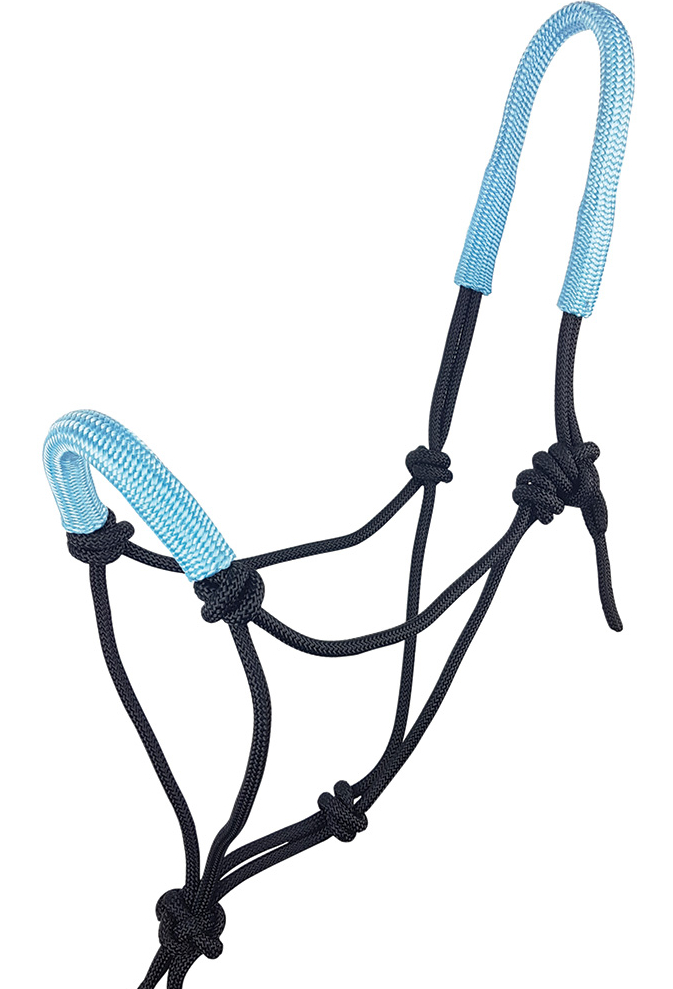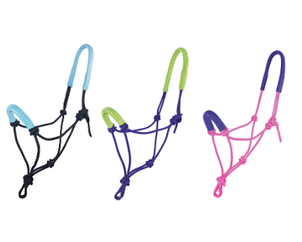 うなじと鼻部分に馬の顔を傷つけないパットがついたロープタイプの無口