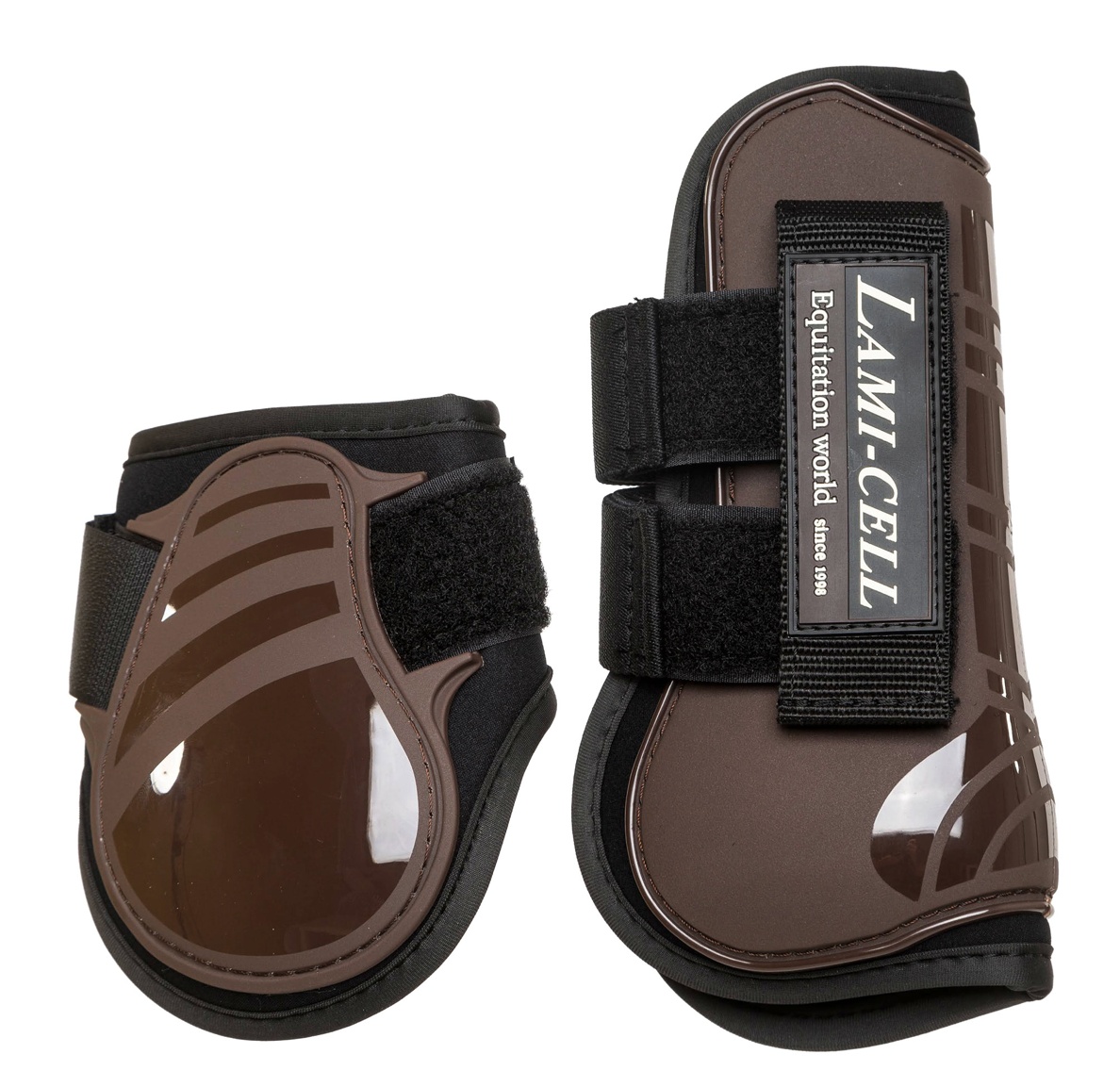 耐久性に優れたPU表素材と内側には柔らかなネオプレンパッドを採用し、衝撃吸収性と快適性を向上させたホースブーツ前後肢セット