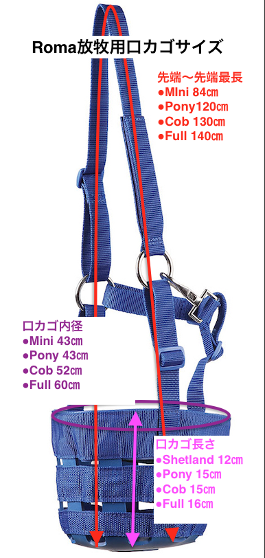 ミニチュアホースサイズから揃う食いしん坊の馬が放牧時に急いで食べ過ぎるのを防ぐソフトタイプの口カゴ