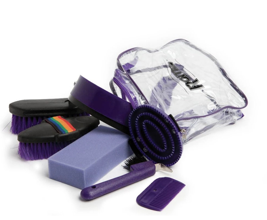 小さめサイズのお手入れ用品7品 持ち運びに便利な透明バッグのグルーミングセット