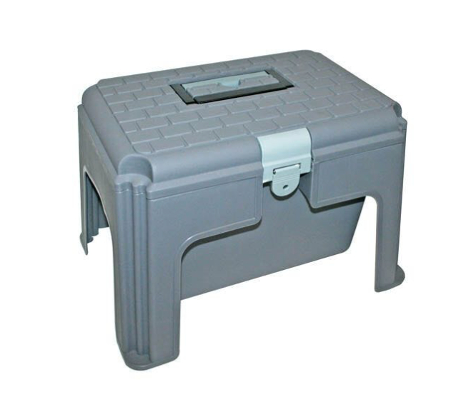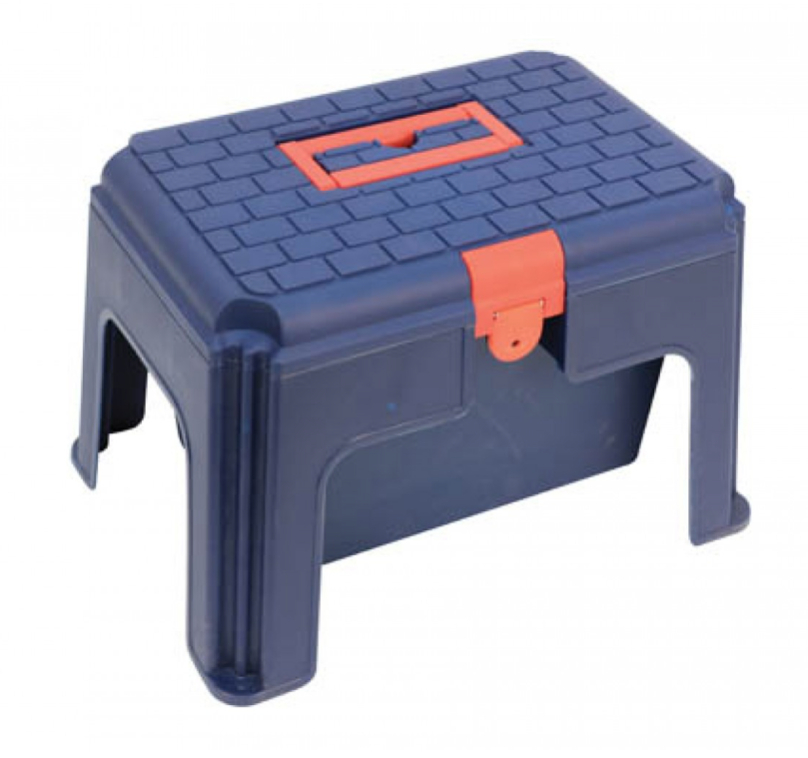 滑り止め凹凸が付いた許容重量80kg迄の踏み台にもなるお手入れ道具入れ