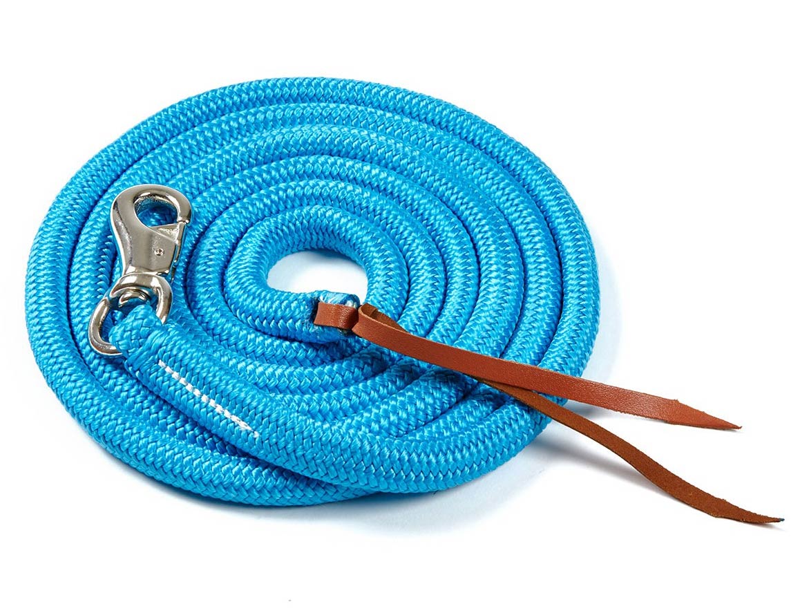 ナチュラルホースマンシップにも使われる丈夫なブルスナップがついたカラフルカラーの調教用長め(3.65m)リード