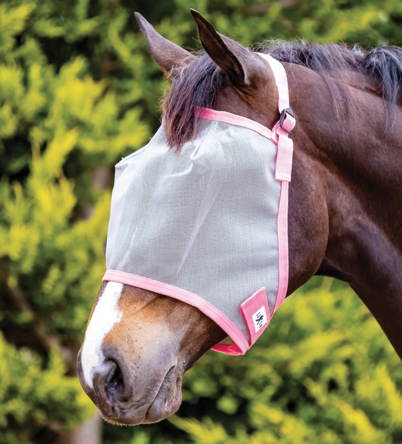 強い日差しから目を護り、嫌なハエやアブを寄せ付けない風通しの良いフライマスク