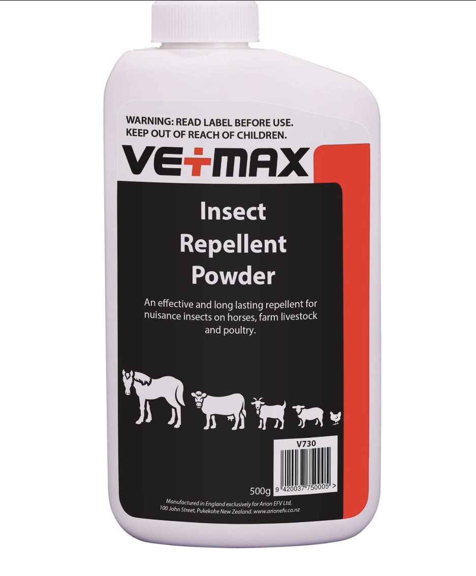 馬だけではなく農場で飼育される動物全般の体や寝床などにも使える粉末タイプの虫除け剤