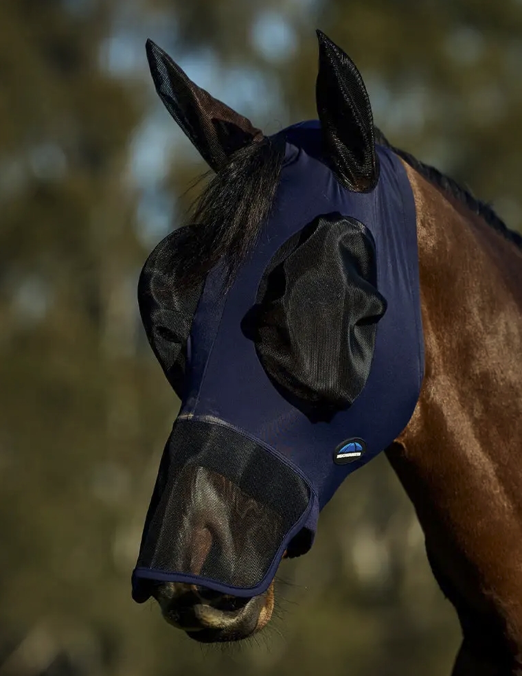 ●馬の顔にフィットするストレッチ素材が虫の侵入を妨げます