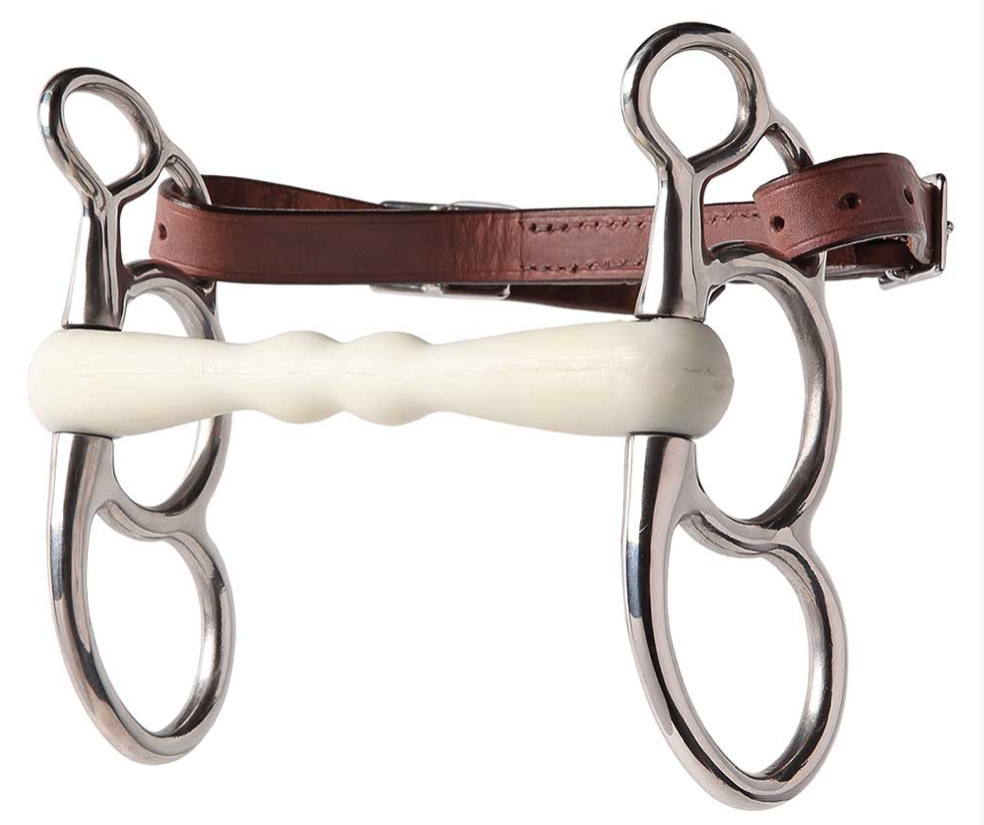 ユニークな形状と素材で馬をリラックスさせる柔らかなマウスピースを使った馬車用ハミ