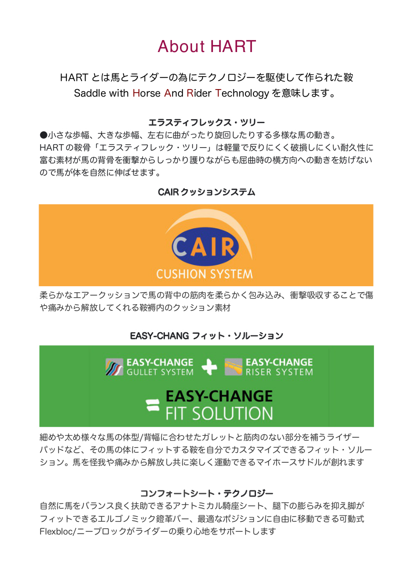 馬にもライダーにも優しいHARTテクノロジーの鞍