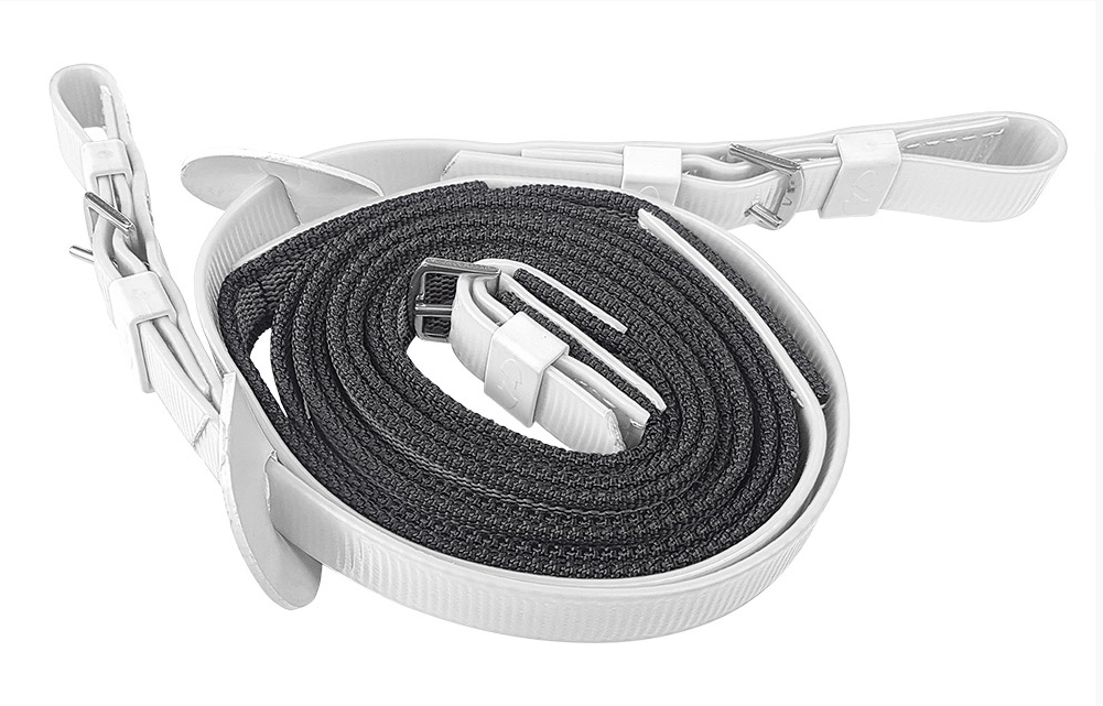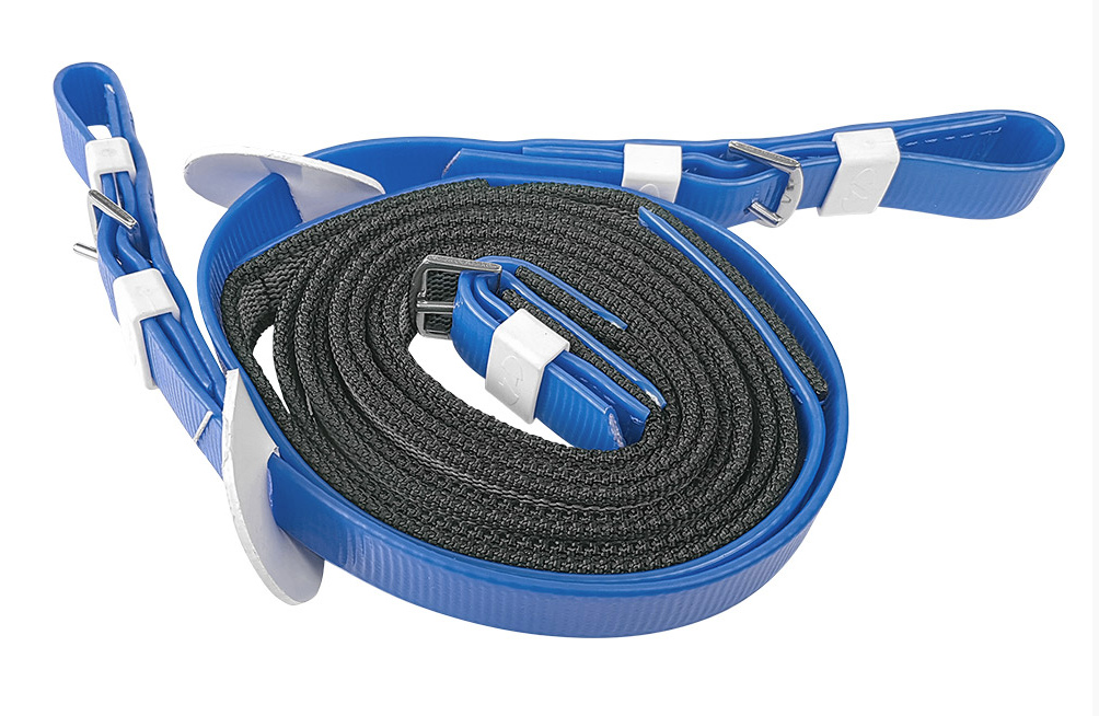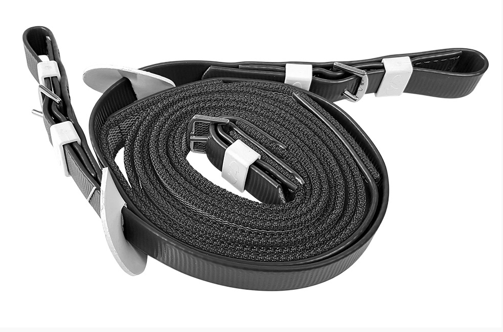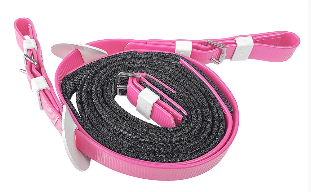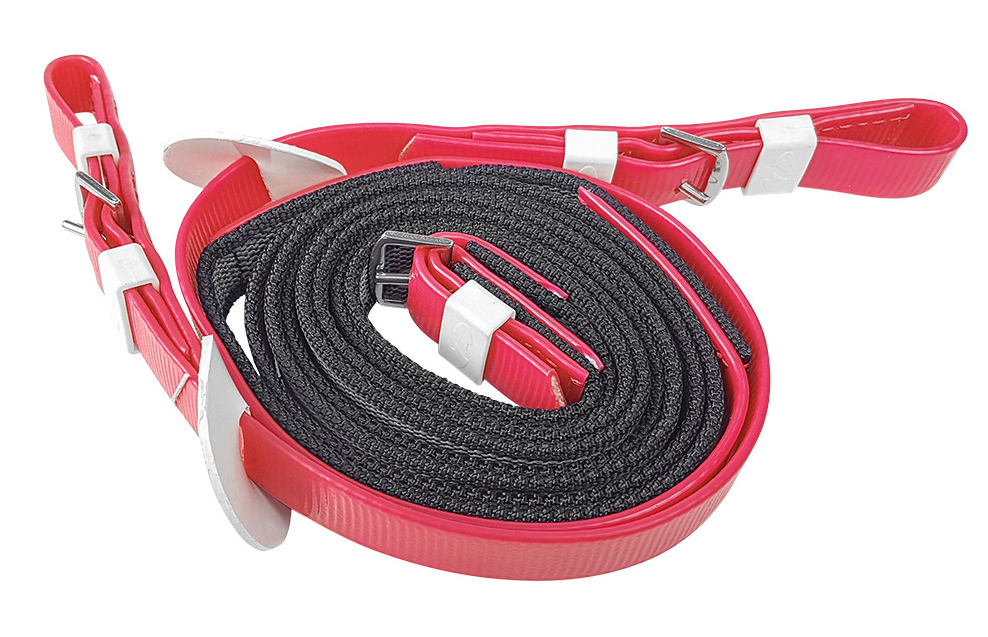 ZilcoカラーPVCコンビ鼻革頭絡とお揃いの薄めで握りやすいゴム織込みシュアグリップになったお手入れ簡単、カラバリ豊富な手綱